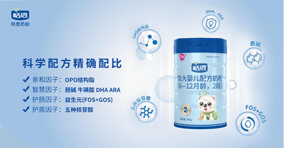 恬恩奶粉的配方由重庆市乳制品工程技术研发中心研发,总结亚洲人群母乳精华,匠心打造第三代OPO配方,更贴近中国母乳结构,更适合中国宝宝体